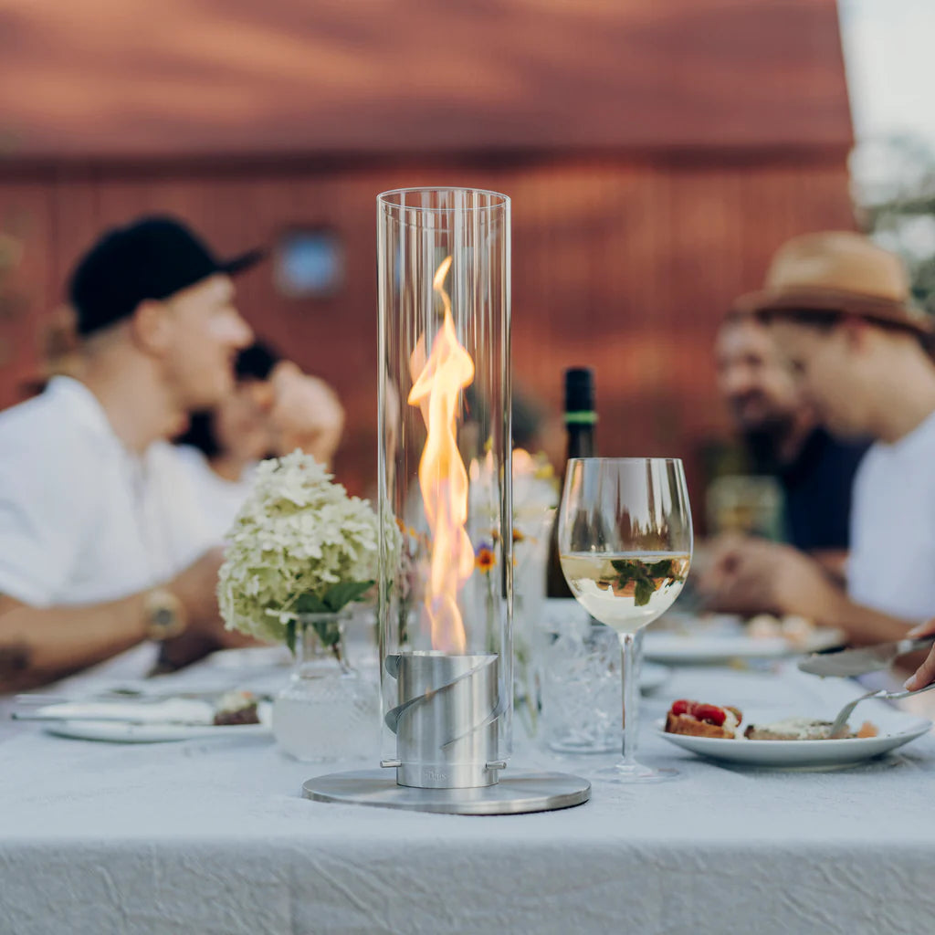 - Feu de table avec extension optionnelle en photophore, torche de jardin ou feu suspendu